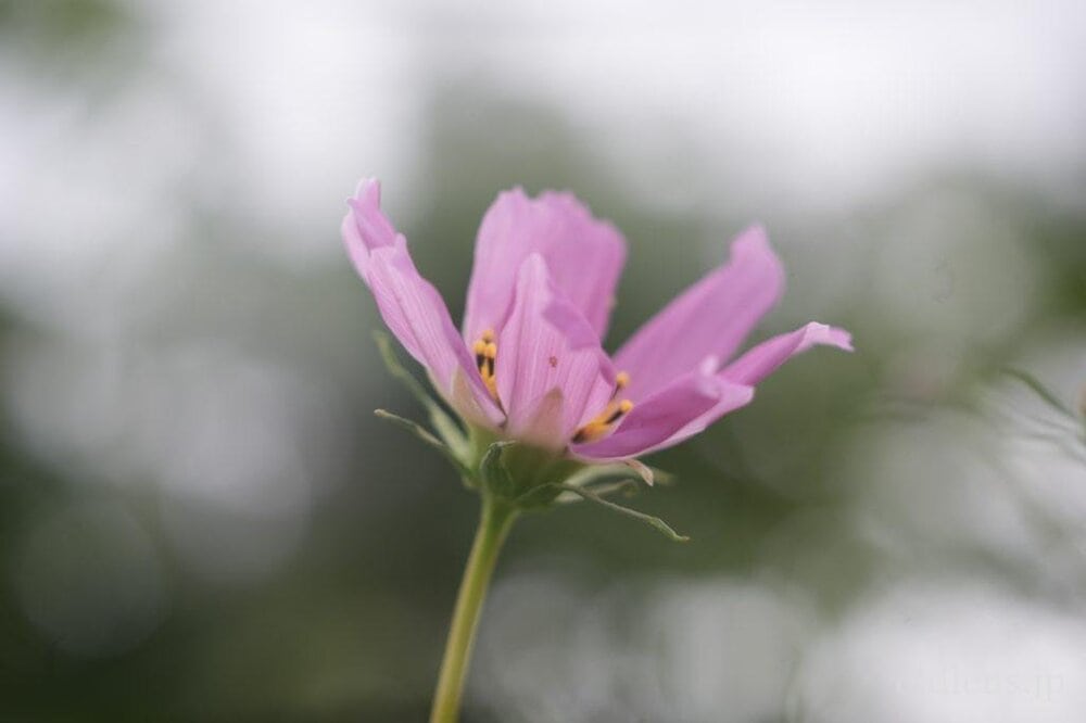 コスモス。たまには引きで撮って見る。寄った方がボケが大きくなるから面白いのだ。
