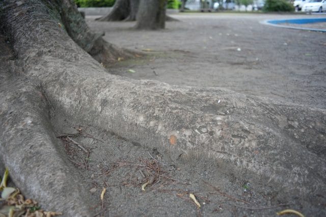 木の幹の根っこが力強くてかっこいい。